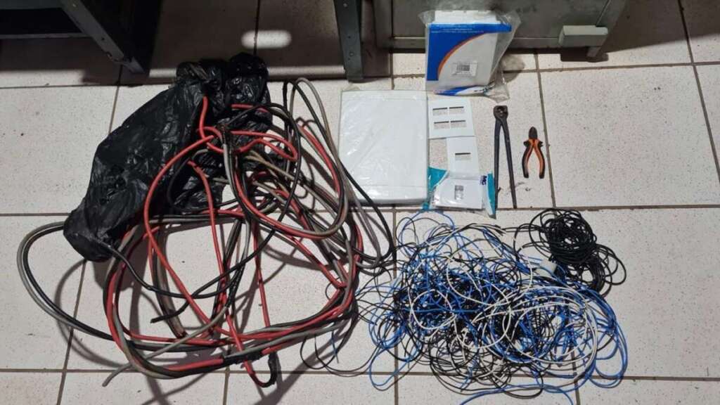 Em patrulhamento pela área central, os Cabos PMs André e Menezes, da viatura I—36401, se depararam com dois indivíduos, ambos sendo identificados como deparamos com André Ferreira e José Fernandes, sendo que cada um portava um saco preto, diante da fundada suspeita de imediato foram abordados e localizado em um dos sacos um cabo de energia de aproximadamente 10 metros, onde confessaram que praticaram furto em dois lugares, sendo que furtaram o cabo de energia da caixa de força da Praça Central e no outro saco foi localizado cerca de 30 metros de fio elétrico, uma caixa de passagem plástica, três espelhos de interruptores de tomada, uma tampa de caixa de energia, onde confessaram ter furtado de uma edícula pela Rua: Melvin Jones no Jardim do bosque, onde pularam o muro.