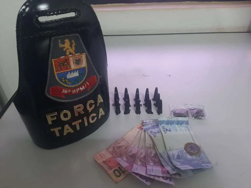 O adolescente ao ver a viatura policial retirou algo do bolso direito e arremessou para o meio da rua, sendo visualizado dinheiro em várias notas e alguns objetos que de imediato não foi possível identificar, fugindo do local, mas sendo abordado.